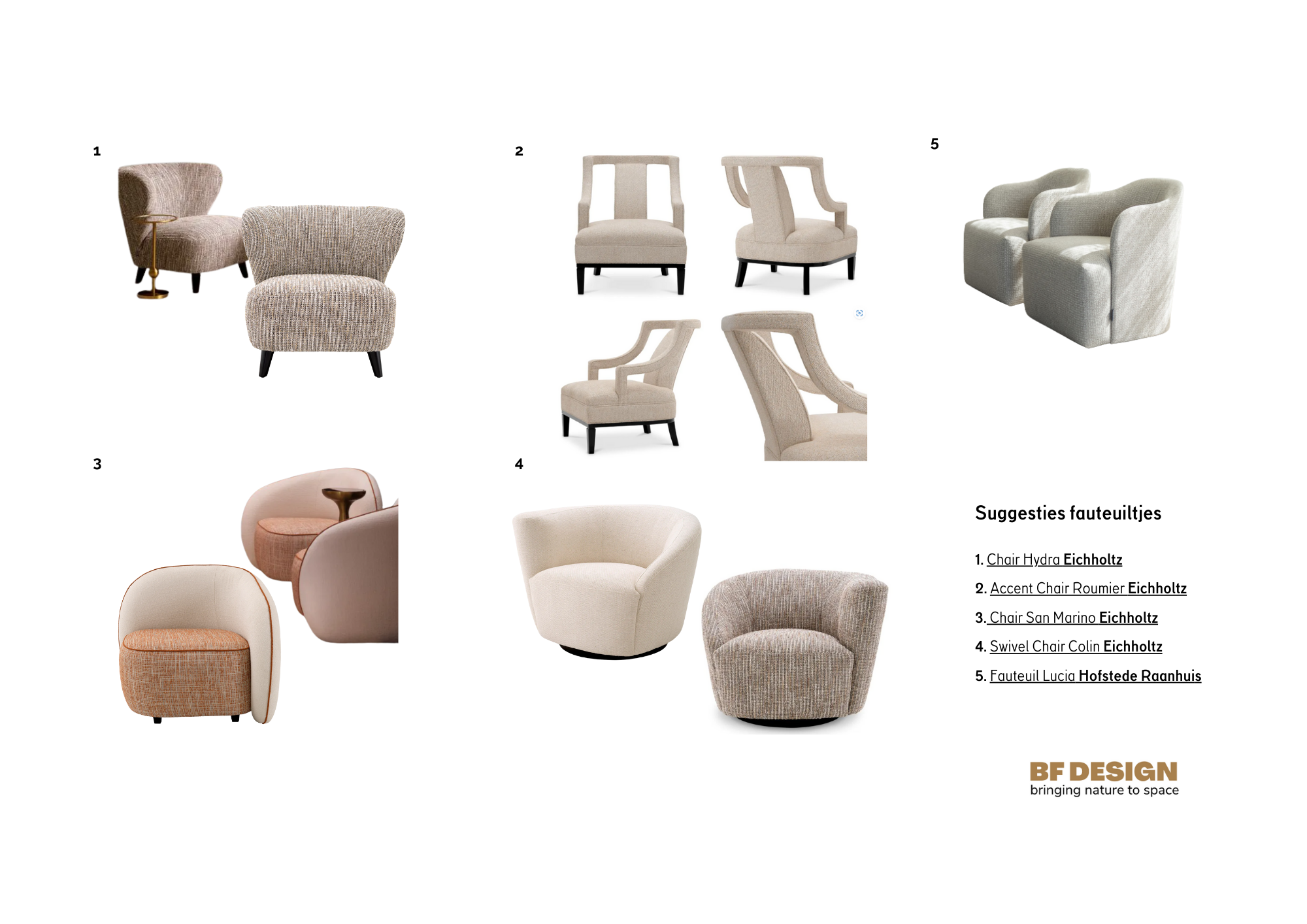 Since the client expressed difficulty in finding the recommended armchairs and lighting, we were pleased to offer her a selection of suggestions to assist in her search.